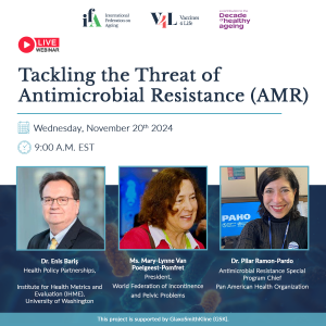 To address these challenges, the International Federation on Ageing hosted a webinar titled “Tackling the Threat of Antimicrobial Resistance.” The webinar featured expert presentations on the risks of AMR and current strategies to combat it, with a particular focus on the role of nongovernmental organizations. It explored the impact of AMR, emphasizing the heightened risks among older adults, both those living in the community and those in long-term care (LTC) settings.