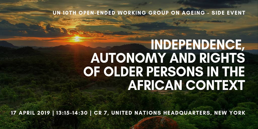 The side event will facilitate multi-stakeholder conversations about the rights of older persons to independence and autonomy in Africa and enhance understandings of systematic drivers of older Africans’ vulnerabilities.  The event will also highlight the importance of legislative opportunities for empowering older persons and strengthening their rights while galvanizing support for the UN Convention on the Rights of Older Persons.